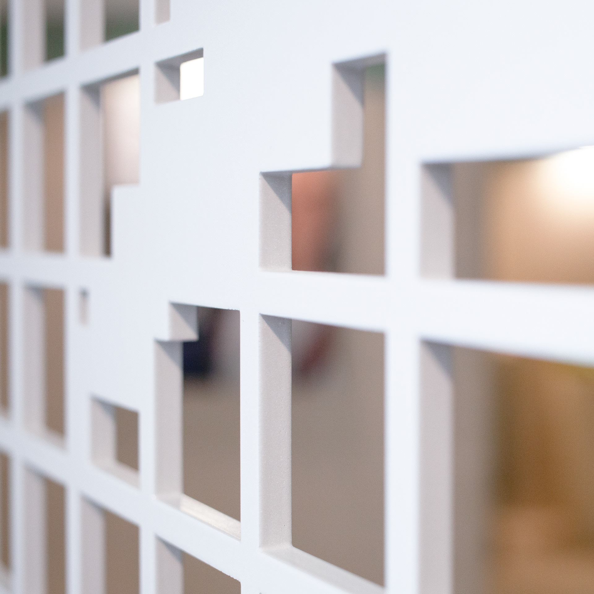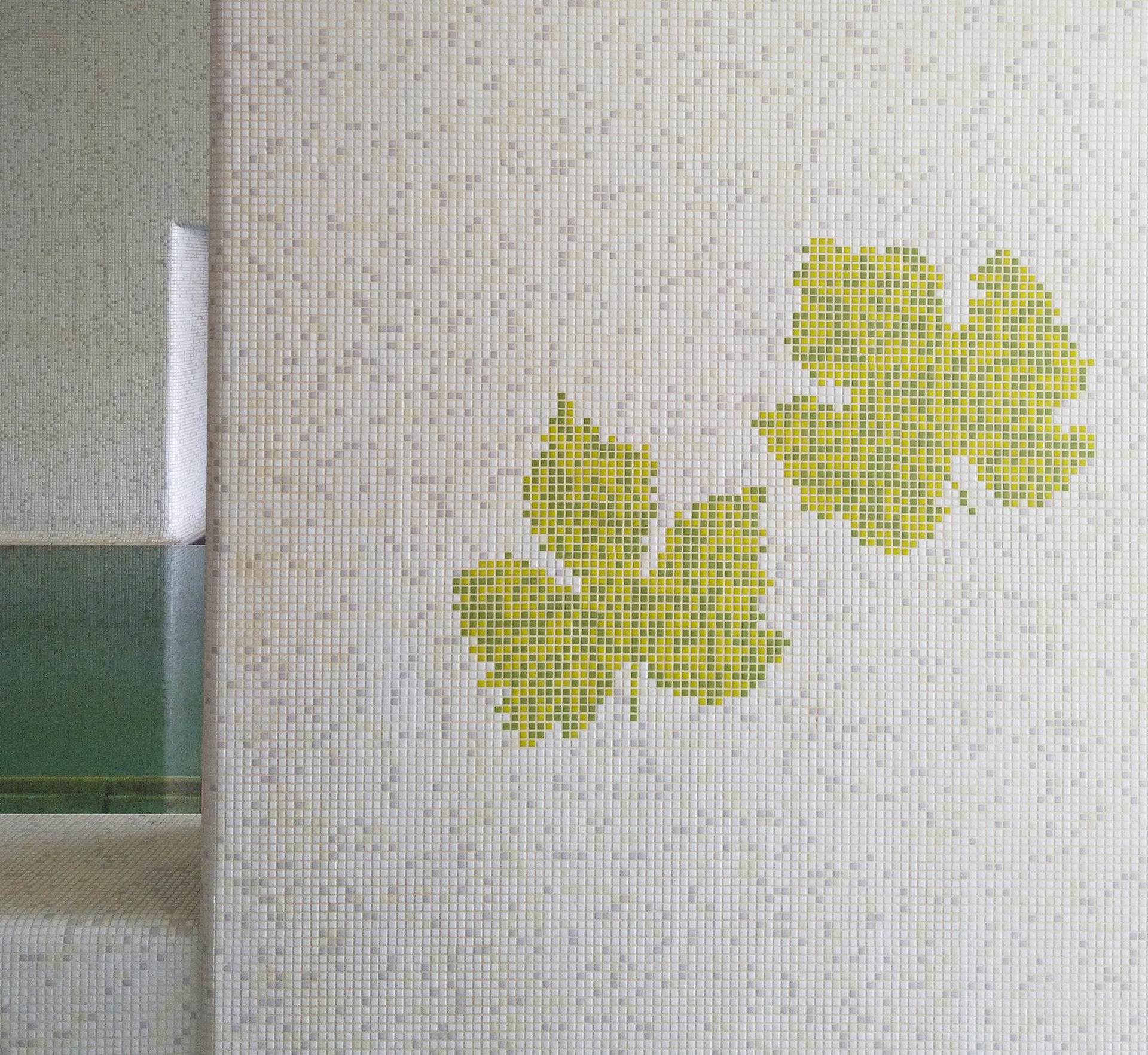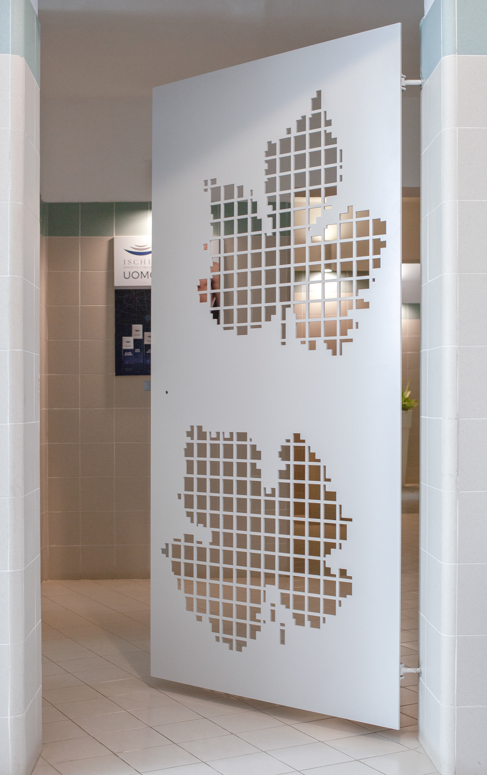 Metal Door made out of a laser cutted steel sheet reproducing a specific figure of a mosaic used in the spa of the Hotel